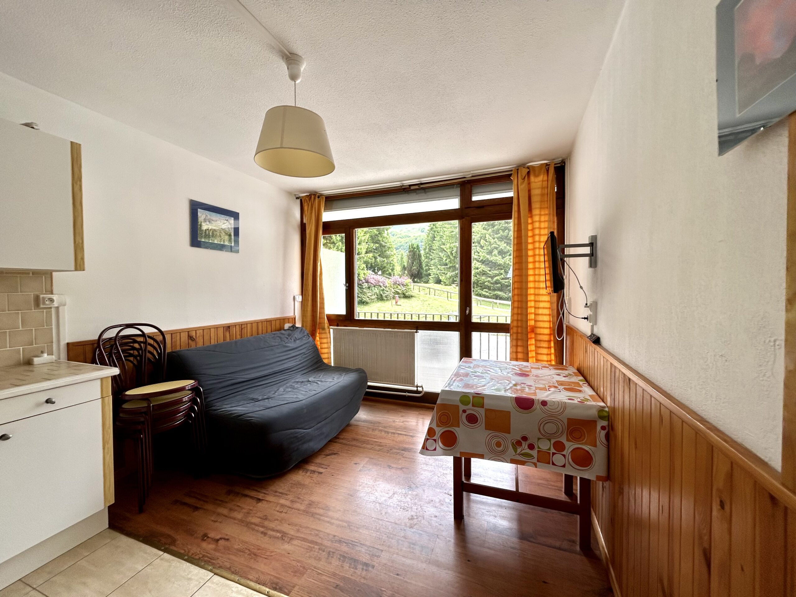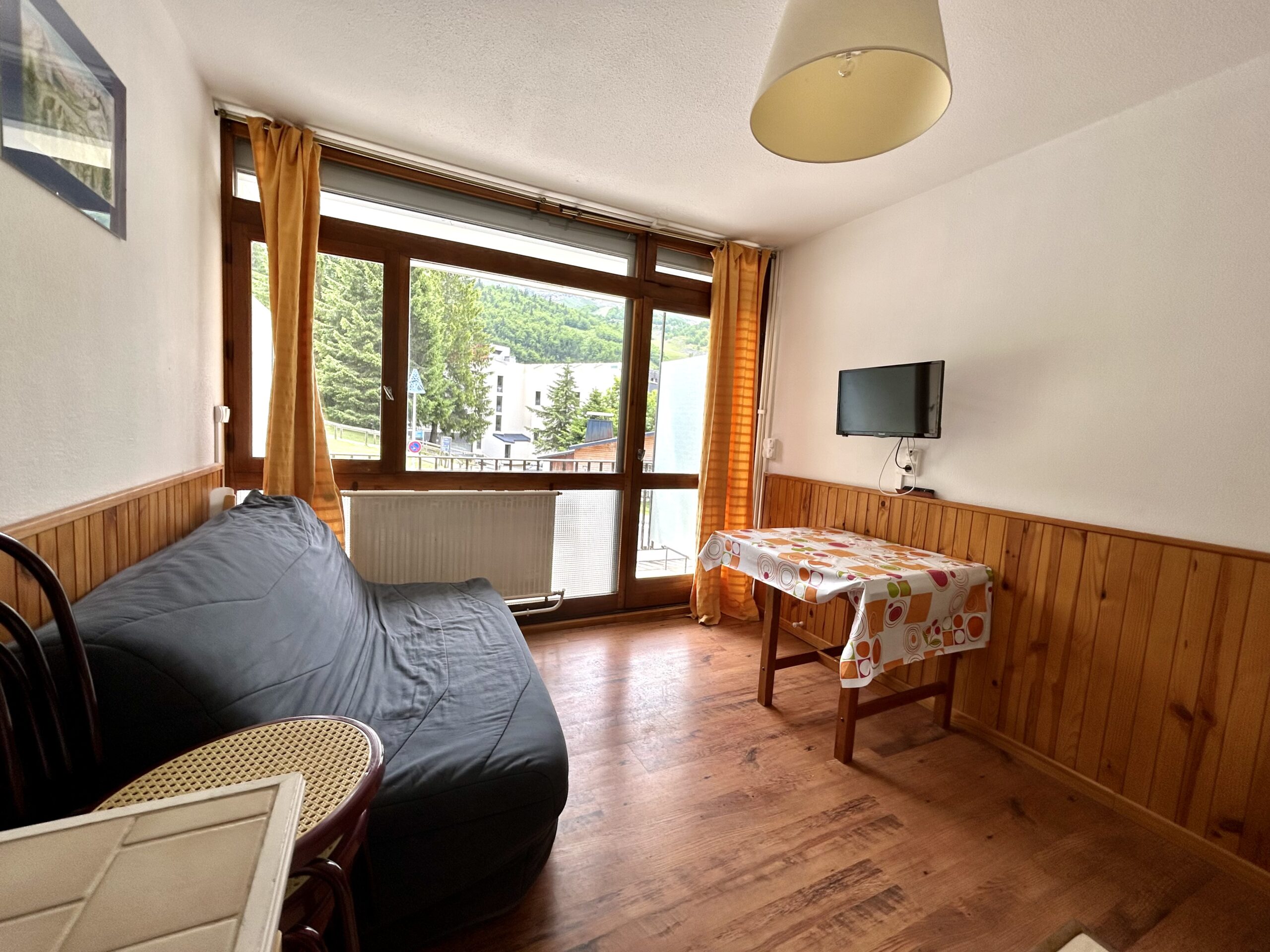 Studio rénové de 27m2 très bien aménagé avec coin nuit séparé et ferme par des portes. Bien exposé plein sud avec vue dégagée sur les pistes. Située dans une résidence calme et bien entretenue avec concierge à l’année et ascenseur.