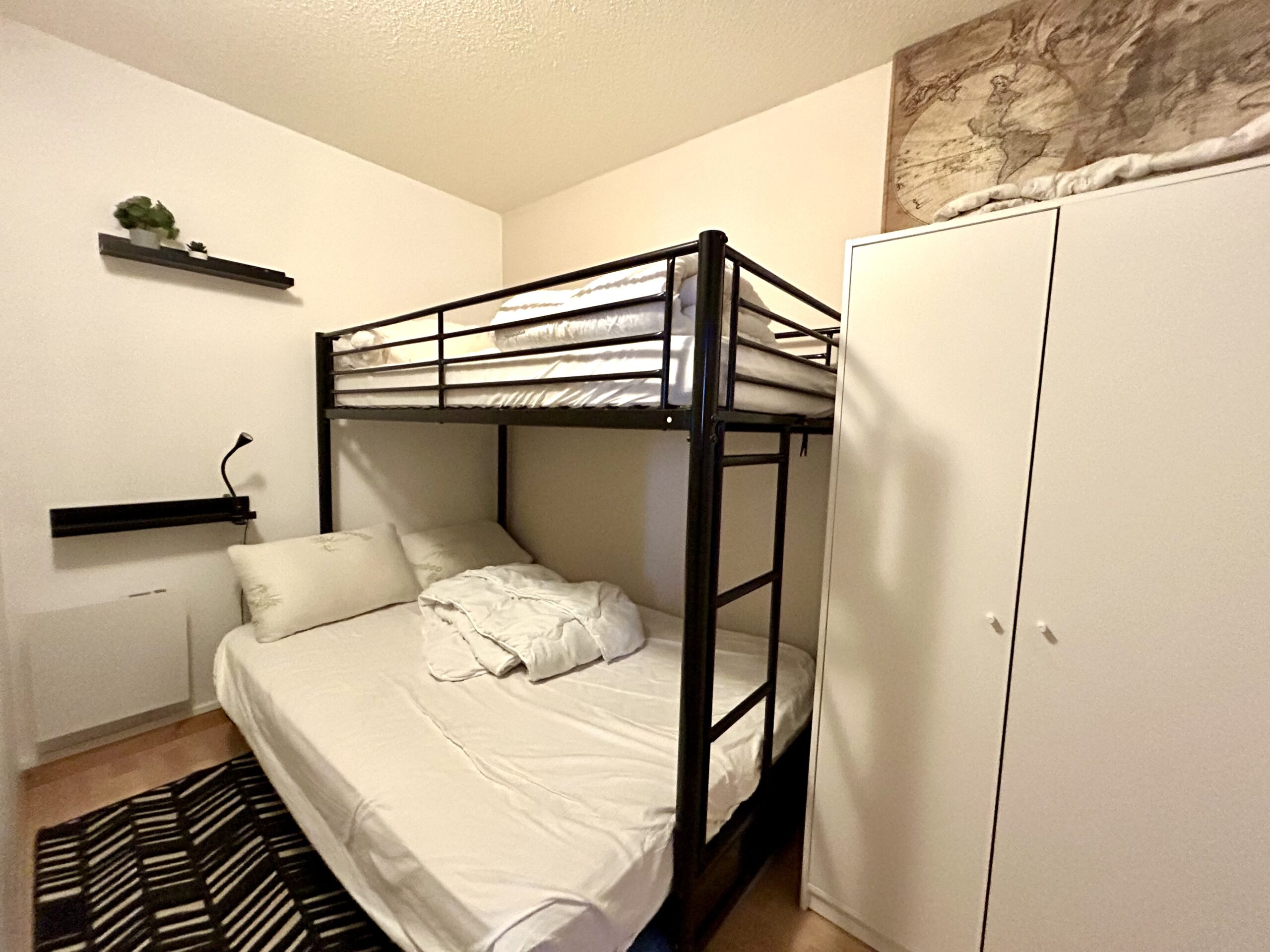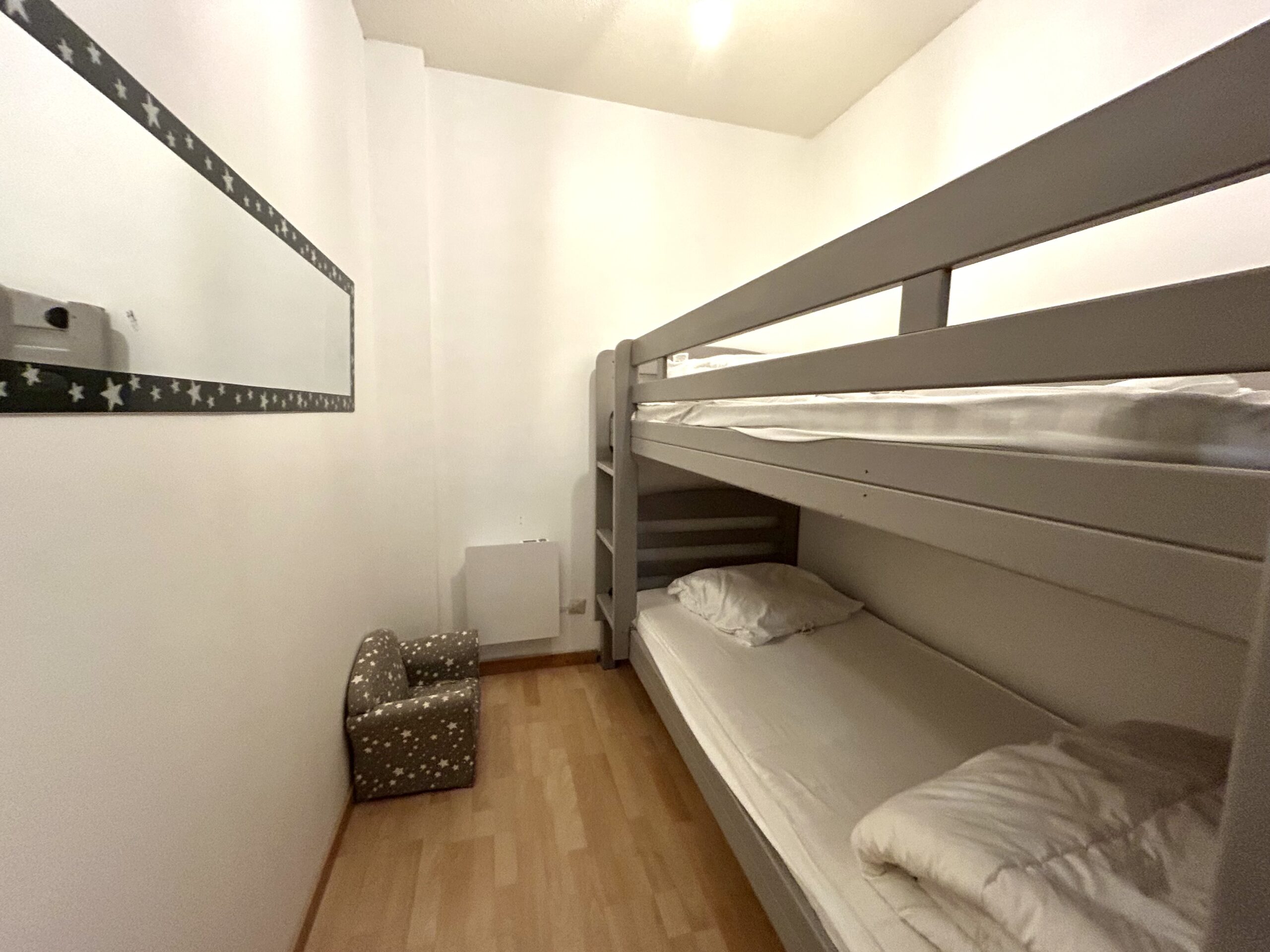 Appartement spacieux pouvant accueillir 9 personnes dans 4 espaces de couchages distincts et fermés. Bien rare sur la station. Potentiel locatif important.