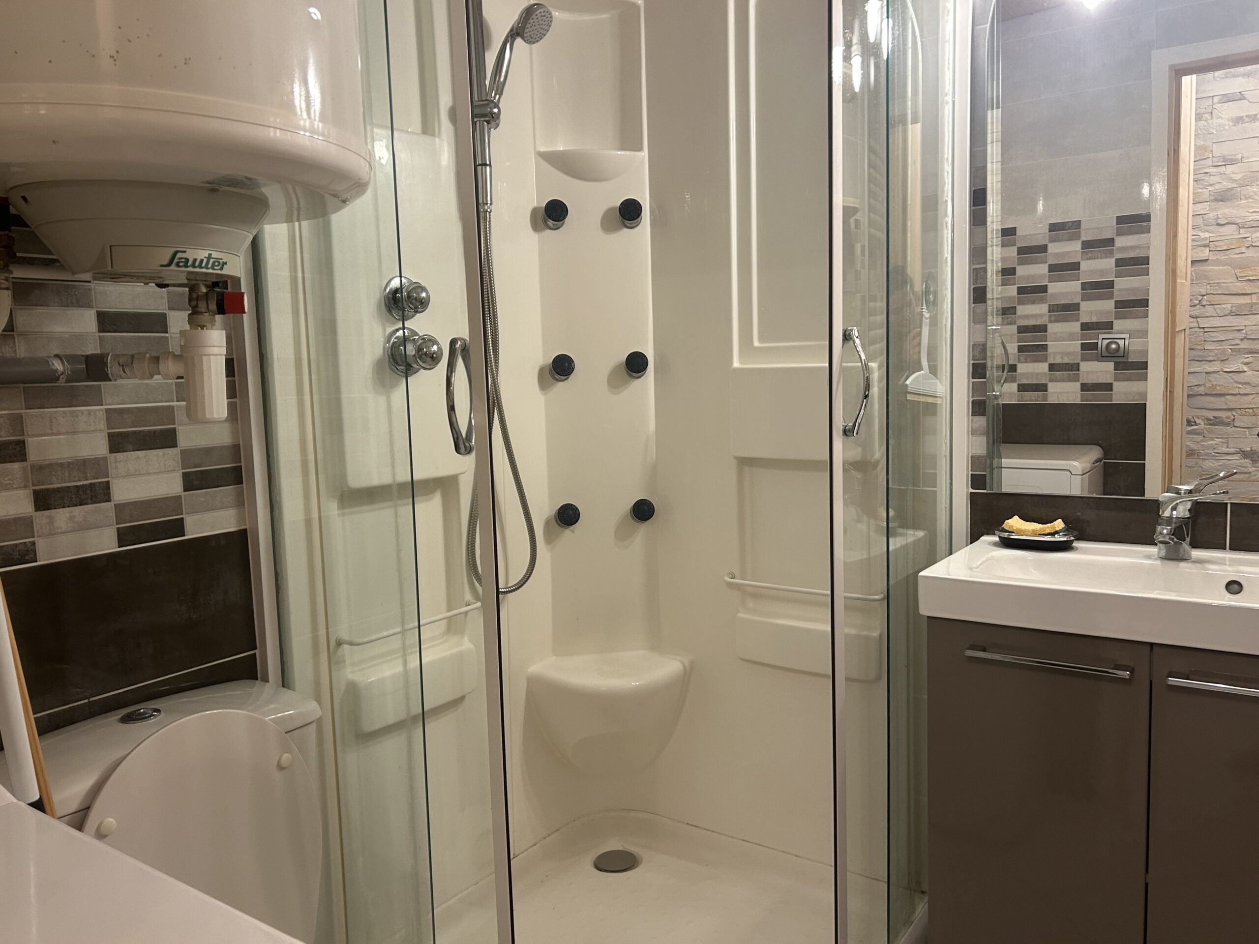Studio fonctionnel et coquet. Tout équipé: lave-vaisselle, machine à laver et aménagements extérieurs (tablette, parabole, lumière). Très nombreux rangements.
