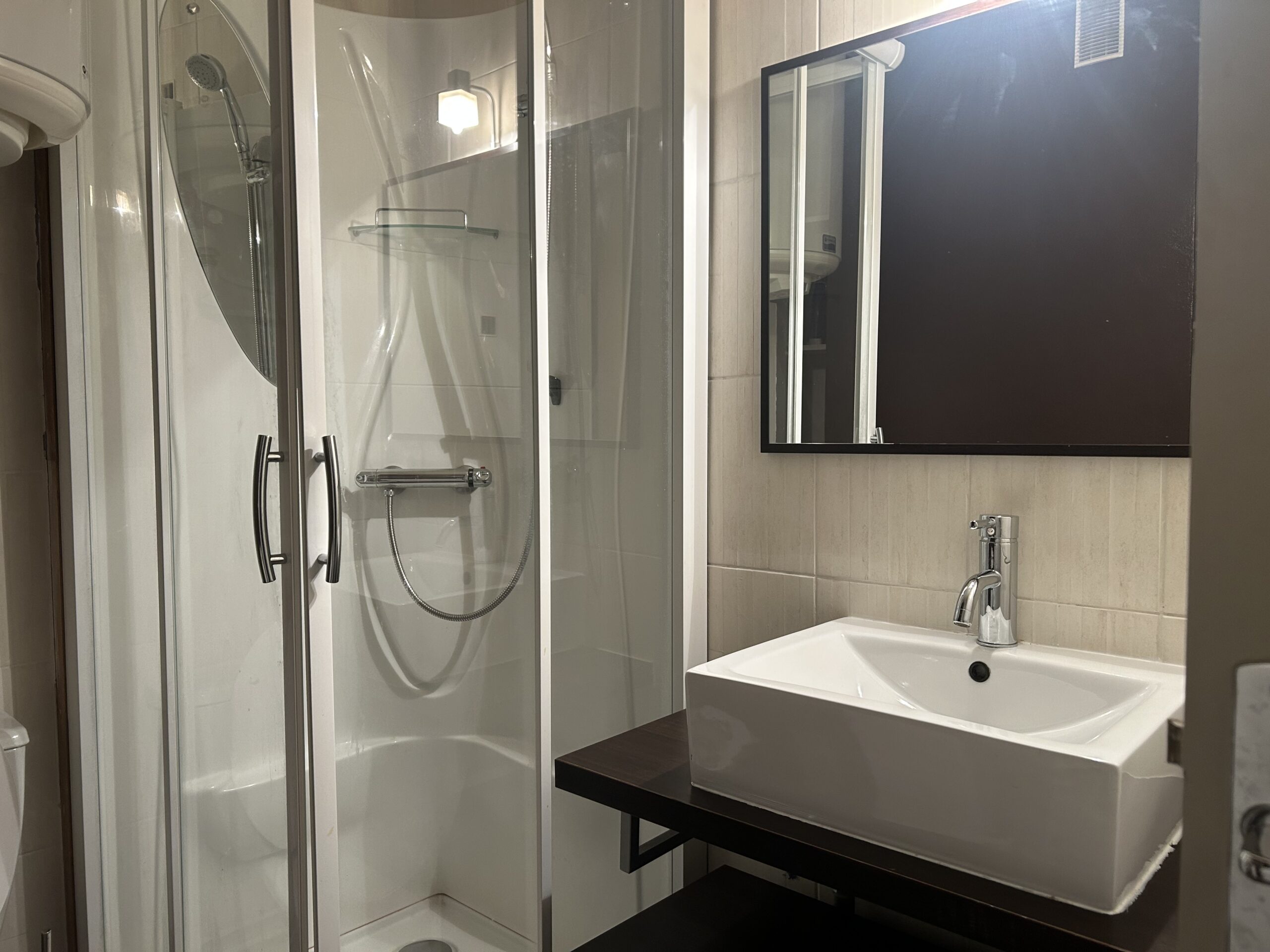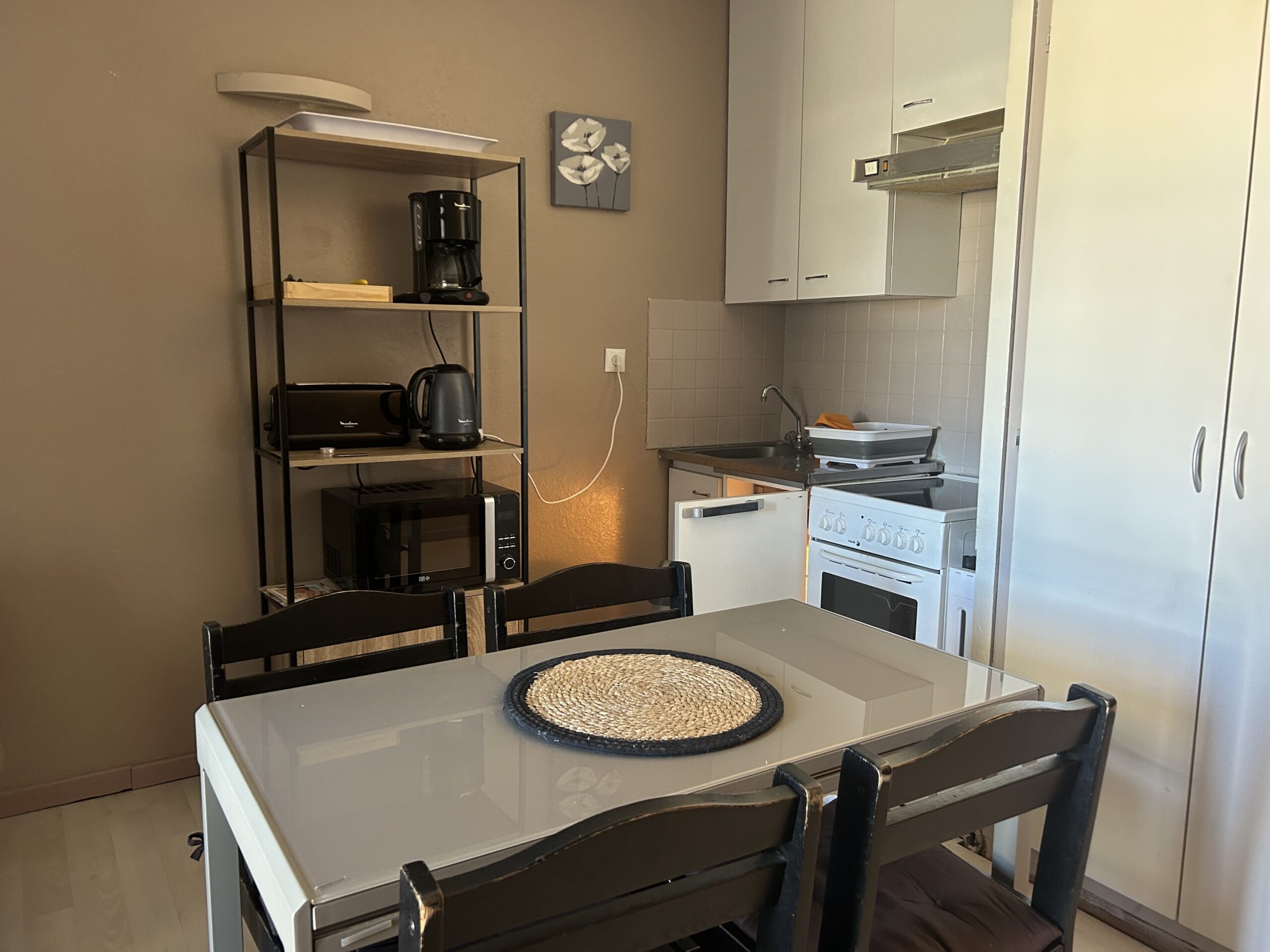 Lit dans le salon, douche et de tous le nécessaire pour la cuisine (four, micro-ondes, plaques de cuisson…).